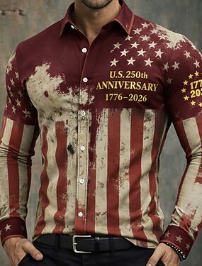 Homens 4 de julho - 250º aniversário dos EUA Bandeira dos EUA Patriótico Camisa Social camisa ocidental Manga Longa Vintage retrô Casual Feriado Roupa de Trabalho Primavera Outono Aberto para a