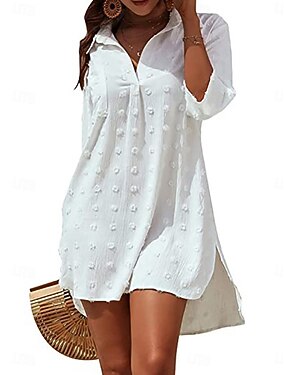 Mulheres Minivestido Vestido branco vestido de praia Vestido preto Cobertura Elegante Moda Clássico Diário Ao ar livre Praia Normal Tecido Manga Longa Decote V Preto Branco Vermelho Rosa Verão
