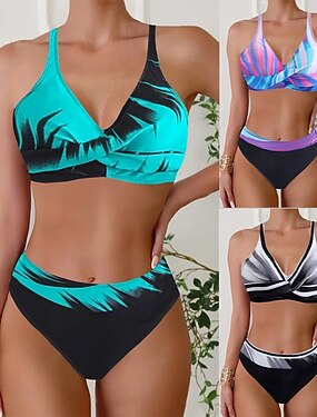 Mulheres Roupa de Banho 2 partes Cavado roupa de banho Frente Única Férias Roupa de Praia Tintura Tie Dye Decote V Sem Manga Fatos de banho