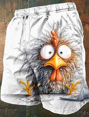 Homens Animal Inovador Frangos Frizzle Calção Justo de Natação Shorts de Natação Bermuda de Surf Cintura Média Engraçado Ao ar livre Férias Bolsos laterais Forro de malha Cintura elástica com cordão