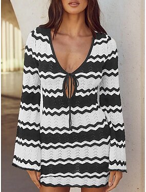 Biquíni Maiô Saia Slim Costas Nuas Férias Praia Vestuário Cor Sólida V Decote Sem Mangas Mangas Longas