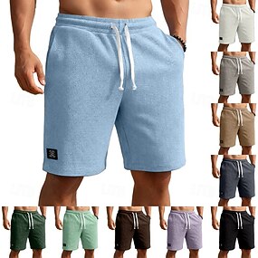 Homens Calções Waffle Calção Shorts casuais Bolsos Cintura elástica Textura Tecido Conforto Respirável Comprimento do joelho Casual Ao ar livre Praia Férias Moda Branco Verde Claro Com Stretch