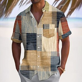 Homens Geométrica Linha Arte abstrata Camisa Social camisa de botão Manga Curta Business casual Diário Ao ar livre Férias Verão Primavera Aberto para a Lateral Impressão 3D Camisa tipo linho Azul
