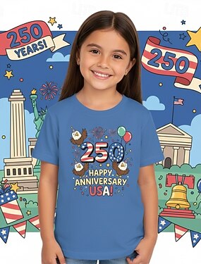 Para Meninas 3D Gráfico 250º Aniversário Camisa Camiseta Manga Curta Impressão 3D Verão Primavera Esportes Moda Roupa de rua Infantil 4-12 anos Gola Redonda Casual Diário Ao ar livre Normal