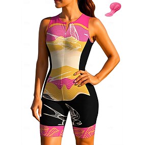 Mulheres Camisa para Ciclismo Macacão para Triathlon Jersey em declive Sem Manga Verão Primavera Outono Violeta Verde Vermelho Rosa Folha Geométrica Pássaro Gradiente Linhas / Ondas Moto Filtro Solar