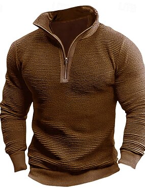 Homens Moletom Moletom com zíper Vinho Verde Tropa Marron Café Cinzento Meio Zíper Tecido Half Zip Desportos e Ar livre Diário Feriado Poliéster Roupa de rua Básico Casual Outono Inverno Roupa