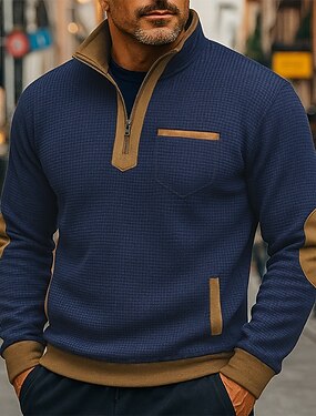 Homens Moletom com zíper Moletom Waffle Estacionar Preto Azul Marinha Meio Zíper Tecido Bolsos Bloco de cor Trabalho Desportos e Ar livre Casual Ativo Vintage Legal Primavera Outono Roupa Moletons