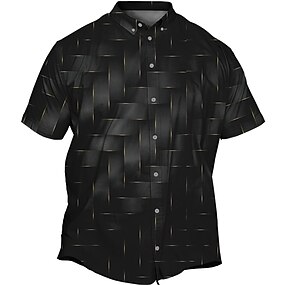 Homens Geométrica Grade / xadrez Camisa Social camisa de botão Manga Curta Moda Casual Ao ar livre Férias Streetwear Verão Primavera Aberto para a Lateral Impressão 3D camisas de colarinho Preto Rosa