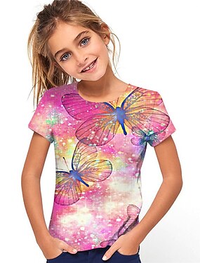 Para Meninas 3D Cavalo Camisa Camiseta Manga Curta Verão Primavera Moda Básico Infantil 4-12 anos Gola Redonda Ao ar livre Casual Diário Normal