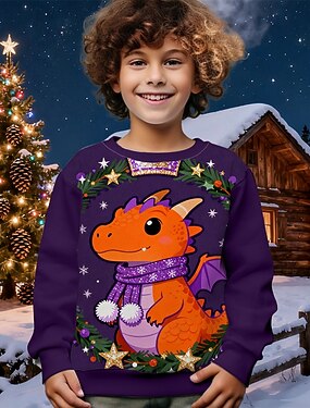 Para Meninos 3D Gráfico Desenho Animado Dinossauro Moletom Pullover Manga Longa Impressão 3D Primavera Outono Esportes Moda Roupa de rua Infantil 4-12 anos Com Capuz Ao ar livre Casual Diário Normal