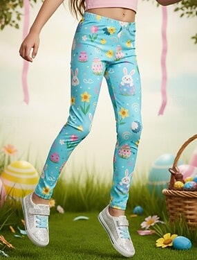 Páscoa Para Meninas 3D Gráfico Coelho Calças Leggings Primavera Outono Estilo bonito Roupa de rua Básico Infantil 4-12 anos Casual Diário Ao ar livre Normal