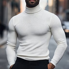 Homens Camiseta camisa muscular Camisa de manga longa Gola alta simulada Manga Longa Gola Alta Gola Enrolada Outono & inverno Tecido Leve Clássico Casual Estriado Ao ar livre Casual Esportes Branco