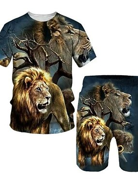 Para Meninos 3D Animal Leão Camisa Manga Curta Impressão 3D Verão Primavera Ativo Esportes Moda Infantil 3-12 anos Ao ar livre Diário Normal