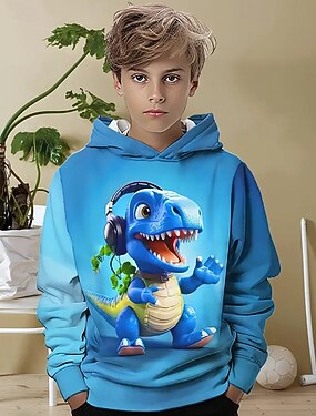 Para Meninos 3D Dinossauro Moletom Manga Longa Primavera Outono Moda Roupa de rua Infantil 4-12 anos Com Capuz Ao ar livre Casual Diário Normal