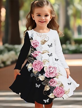 Meninas 3D Gráfico Unicórnio Vestido Manga Longa Verão Primavera Férias Diário Feriado Princesa Lindo Doce Infantil 4-12 anos Vestido casual Vestido A Line Altura dos Joelhos Normal