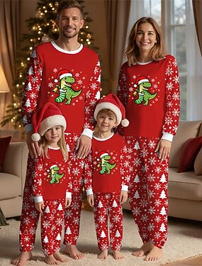 Olhar de família Natal Pijama de Natal para a Família Pijamas Conjuntos de família Gráfico Dinossauro Floco de Neve Casa Imprimir Vermelho Manga Longa Diário Roupas Combinando