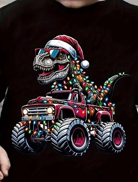 Algodão Infantil Para Meninos Preto Vermelho Gráfico Dinossauro Camisa Camiseta Gola Redonda Manga Curta Casual Diário Ao ar livre Moda Roupa de rua Designer Estampado Primavera Todas as Estações