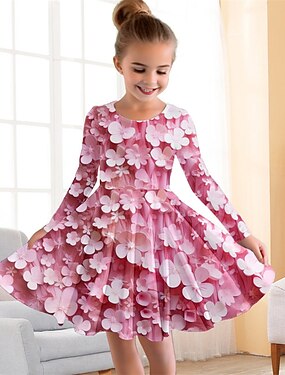 vestido infantil meninas 3-10 anos gráfico uma linha vestido diário férias férias impressão rosa acima do joelho sem mangas casuais bonitos vestidos doces primavera verão ajuste regular