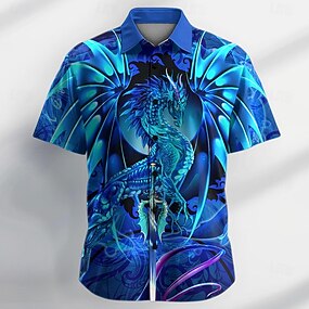 Homens Animal Dragão Camisa Social camisa de botão Camisa de grife Manga Curta Vintage retrô Férias Casual Verão Primavera Aberto para a Lateral Impressão 3D camisas de colarinho Azul Roxo Laranja