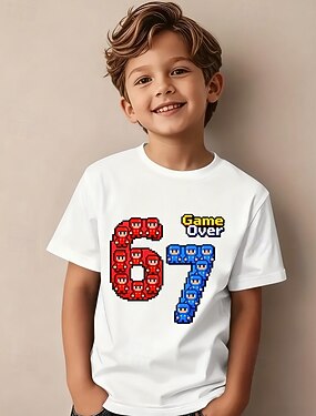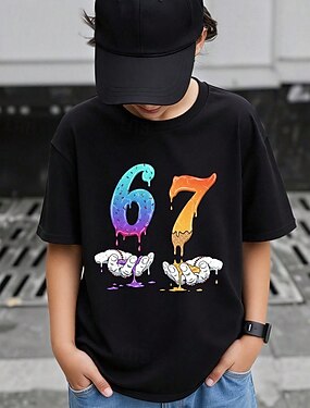 Algodão Infantil Para Meninos Preto Branco Gráfico Gírias engraçadas 67 Camisa Blusa Gola Redonda Manga Curta Ao ar livre Dia a Dia Moda Roupa de rua Designer Estampado Verão