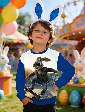 100% Algodão Páscoa Infantil Para Meninos Azul Preto Branco Gráfico Coelho Camisa Blusa Gola Redonda Manga Curta Casual Diário Ao ar livre Moda Roupa de rua Designer Estampado Verão Primavera