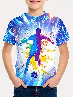 Para Meninos 3D Gráfico Futebol Americano Camisetas de futebol Camisa Camiseta Manga Curta Impressão 3D Verão Primavera Esportes Moda Roupa de rua Infantil 5-12 anos Gola Redonda Casual Diário Ao ar