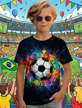 100% Algodão Infantil Para Meninos Preto Branco Vermelho Gráfico Futebol Camisa Blusa Gola Redonda Manga Curta Ao ar livre Dia a Dia Moda Roupa de rua Designer Estampado Verão Primavera