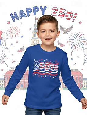 Para Meninos 3D Gráfico 250º Aniversário Camisa Camiseta Manga Longa Impressão 3D Primavera Outono Esportes Moda Roupa de rua Infantil 4-12 anos Gola Redonda Casual Diário Ao ar livre Normal