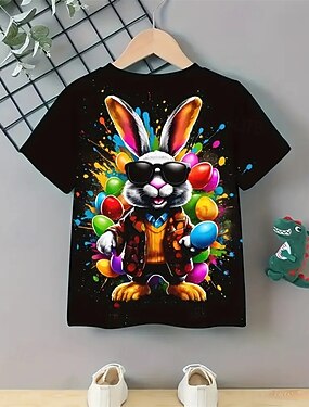 100% Algodão Páscoa Infantil Para Meninas Branco Gráfico Coelho Camisa Camiseta Gola Redonda Manga Curta Ao ar livre Férias Diário Clássico Casual Imprimir Verão
