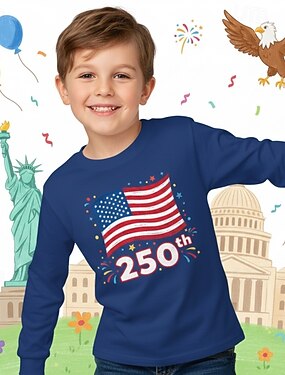 Para Meninos 3D Gráfico 250º Aniversário Camisa Camiseta Manga Longa Impressão 3D Primavera Outono Esportes Moda Roupa de rua Infantil 4-12 anos Gola Redonda Casual Diário Ao ar livre Normal