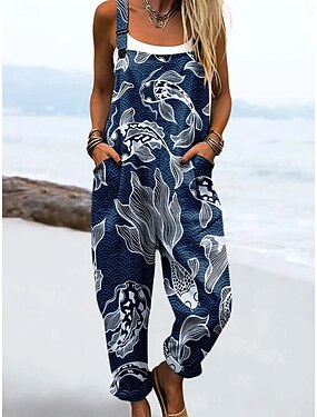 Mulheres No geral Ativo Floral Sem Manga Sem Mangas Harém Decote Quadrado Bolsos Imprimir Diário Praia Ajuste Largo Azul Rosa Bege Verão