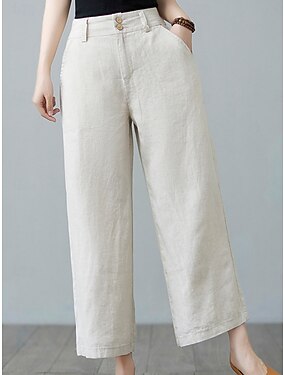 Mulheres Linho de algodão sintético chinês Reto Férias Moda Roupa de rua Mimolet Cintura Alta Tecido Bolsos Cintura elástica Confortável Conforto Macio Micro-Elástica Ao ar livre Rua Preto Branco Bege
