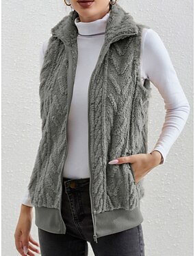 Mulheres Colete Confortável Respirável Zíper Bolsos Casual Tecido Férias Rua Casual Roupa Diária Zíper Padrão Aberto para a Lateral Normal Sem Manga agasalhos Preto Rosa Vermelho Primavera Outono
