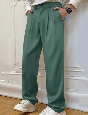 Homens Calças Social chinês Calças largas Bolsos Botões Pregas Tecido Conforto Formal Trabalho O negócio Moda Estilo Clássico Marron Escuro Preto Micro-Elástica