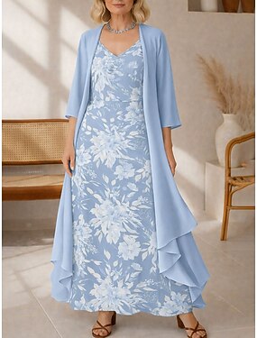 Mulheres Vestido Longo Conjunto de vestido Vestido A Line Férias Boho Estilo Praia Normal Floral Gráfico Manga 3/4 Decote V Azul Rosa Verde Bege Verão Primavera Outono Inverno