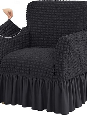 Capas de poltrona em tecido seersucker elástico com saia, capa de poltrona de uma peça com braços, capas de poltrona macias e elásticas, protetor de móveis antiderrapante e lavável para decoração de