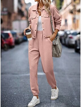 Mulheres Conjuntos de calças Bolero Top Manga Longa Colarinho de Camisa Côr Sólida Moda Roupa de rua Casual Diário Ao ar livre Rosa Verde Tropa Bege Outono Normal