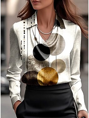 Mulheres Camisa Social Franzido Com Pregas Âmbar Gráfico Geométrica Elegante à moda Moderno Manga Longa Gola Boba Tops regulares Diário Trabalho Traje de festa para noite Azul empoeirado Bege Outono