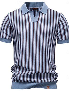 Homens Pólo Camisas Polo Casual Rua Lapela Manga Curta Básico Moderno Tiras verticais Leve Respirável Verão Primavera Normal Azul Marron Bege Pólo