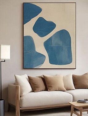 pintura a óleo azul e bege, pintura de parede feita à mão, pintura com textura azul, arte de parede wabi-sabi pintada à mão, pintura azul neutra, arte de parede bege, pintura azul, arte de parede