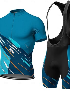 Homens Camisa para Ciclismo Camisa com Bermuda Bretelle Manga Curta Ciclismo de Montanha Ciclismo de Estrada Verão Primavera Azul Geométrica Moto Filtro Solar Resistente a UV Tapete 3D Ciclismo