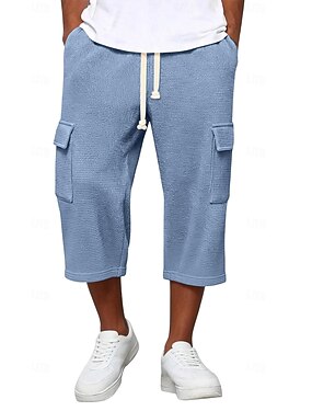 Homens Calções Waffle Bermuda Cargo Calças Capri Calção Shorts casuais Bolsos Cintura elástica Puro Tecido Cor Única Conforto Respirável Comprimento da panturrilha Casual Ao ar livre Praia Férias Moda