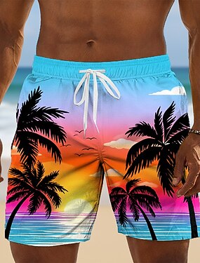 Homens Coqueiro Paisagem Cor gradiente Calção Justo de Natação Shorts de Natação Bermuda de Surf Cintura Média Havaiana férias na praia Bolsos laterais Forro de malha Cintura elástica com cordão