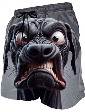 Homens Cachorro Expressão facial animais de desenho animado Calção Justo de Natação Fatos de banho Calções de banho Bermuda de Surf Cintura Média Havaiana Engraçado férias na praia Bolsos laterais