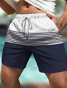 Homens Riscas Estampa Geométrica Shorts de Natação Bermuda de Surf Calção de Banho Cintura Média Havaiana Casual Feriado Praia Com Cordão com forro de malha Cintura elástica Designer Roupa
