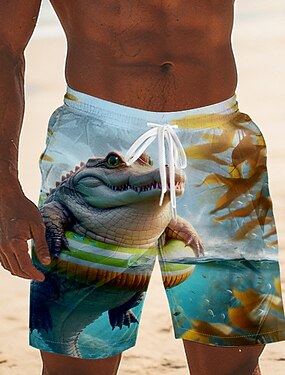 Homens Animal Desenho Animado Crocodilo Calção Justo de Natação Shorts de Natação Bermuda de Surf Cintura Média Engraçado Havaiana férias na praia Bolsos laterais Forro de malha Cintura elástica com