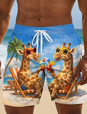 Homens Girafa Engraçado animais de desenho animado Calção Justo de Natação Shorts de Natação Bermuda de Surf Cintura Média Havaiana férias na praia Bolsos laterais Forro de malha Cintura elástica com