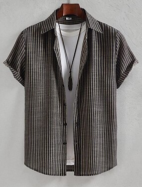 Homens Camisa Social camisa de verão Camisa casual camisa de praia camisa de botão Camisas listradas Preto Manga Curta Riscas Aberto para a Lateral Férias Havaiana Roupa Poliéster Moda Casual