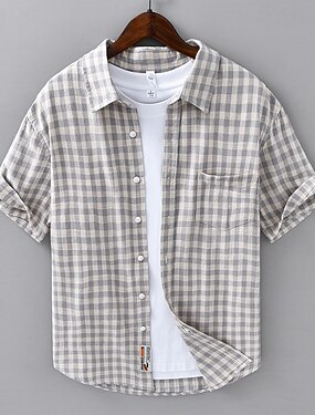 Homens Camisa Social camisa de verão Camisa casual camisa de praia camisa de botão Cinzento Manga Curta Xadrez Lapela Férias Havaiana Roupa Poliéster Moda Casual Confortável