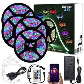 Fita LED Inteligente de 20m 65ft Aplicativo WiFi Bluetooth Sincronização Musical À Prova d'Água RGB SMD 2835 1080 LEDs Funciona com Alexa 12V